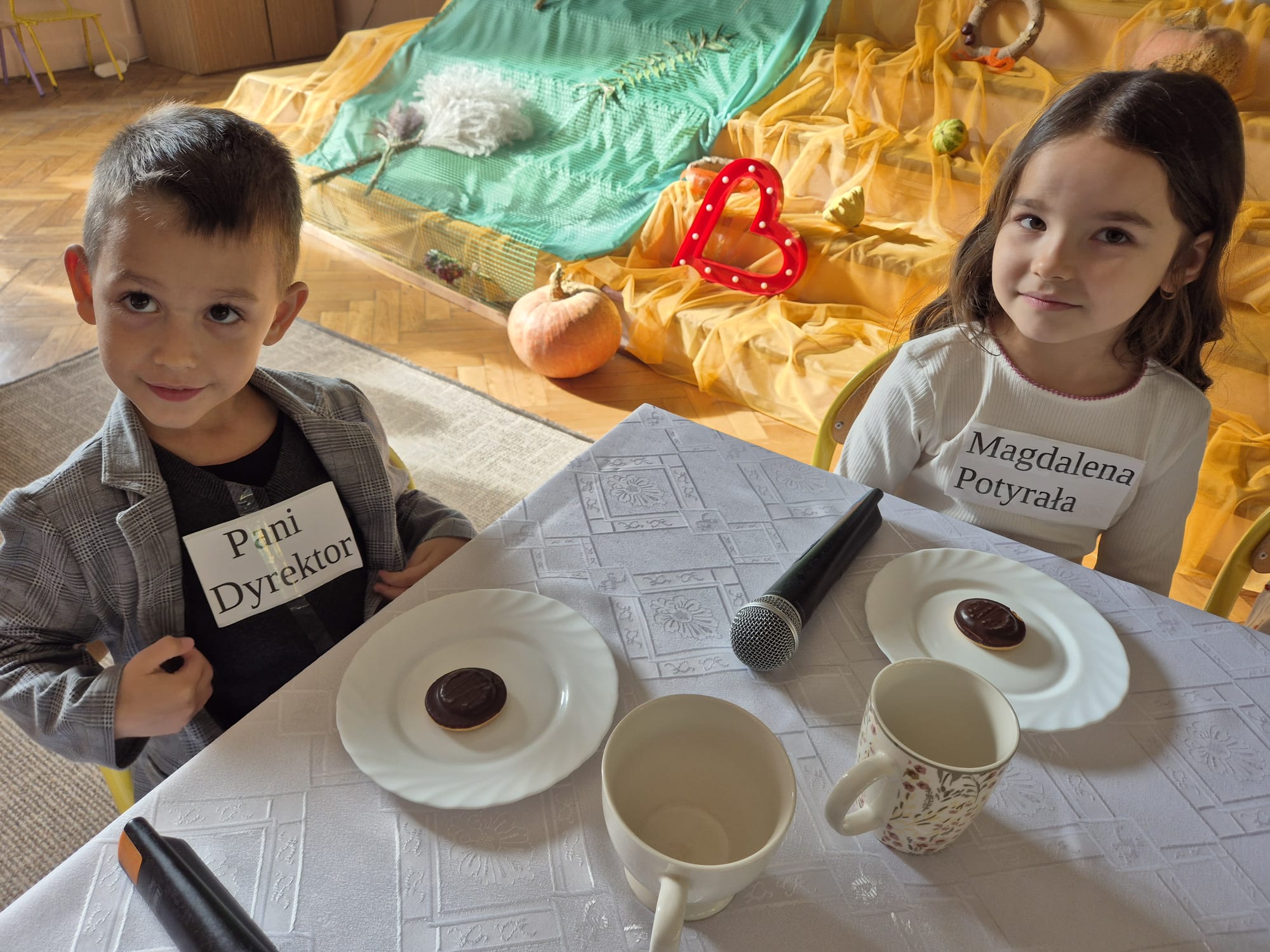 Przedszkolaki z wielkim zaangażowaniem wcieliły się w role nauczycieli i uczniów, pokazując w zabawny, ale i wzruszający sposób codzienne życie w przedszkolu. Występ dostarczył wszystkim wiele radości i wzruszeń, a serdeczne słowa oraz drobne upominki były wyrazem wdzięczności dla naszych wspaniałych nauczycieli i wszystkich osób pracujących na codzień w naszym przedszkolu - za ich trud, cierpliwość i serce wkładane w swoją pracę.