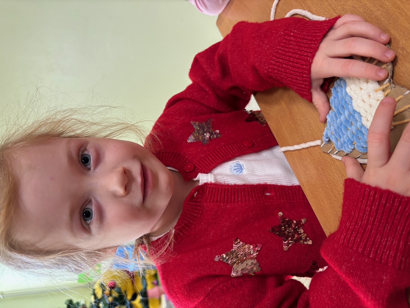 Kółko szydełkowe "Magiczne oczko" podczas zajęć grudniowych.