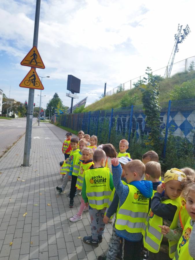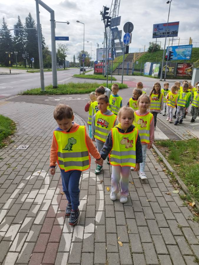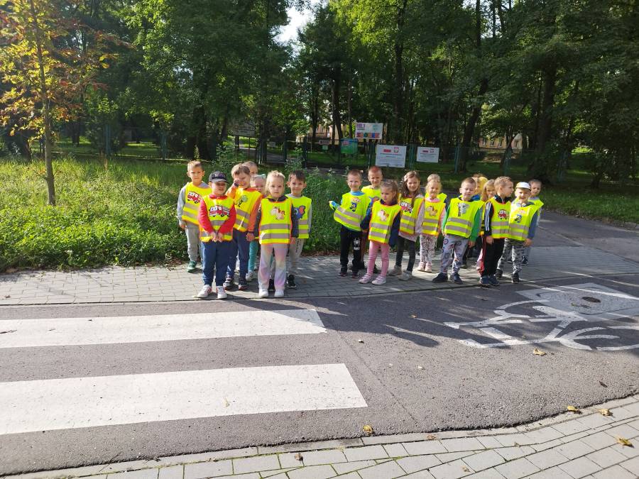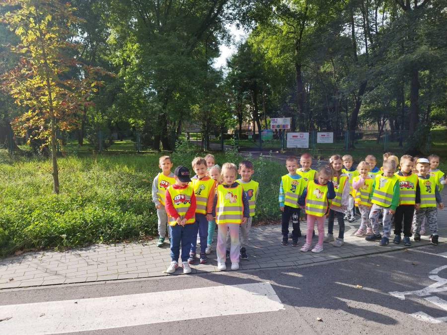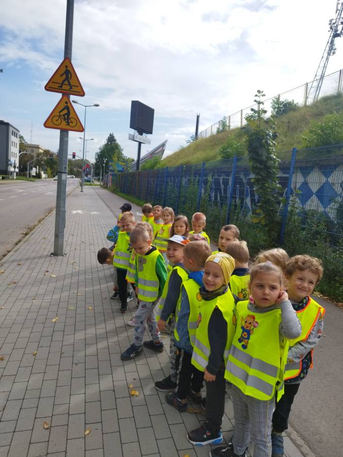 Dzieci z grupy Mrówki przez cały tydzień poznają zasady ruchu drogowego. Przedszkolaki wybrały się na spacer po okolicy aby zaobserwować jakie znaki drogowe znajdują się w pobliżu przedszkola. Spacer miał na celu utrwalenie poznanych zasad ruchu drogowego . Dzieci ćwiczyły również poruszanie się po chodniku w parach i przechodzenie przez przejście dla pieszych. Dzieci obserwowały podczas spaceru ruch uliczny i miały na sobie kamizelki odblaskowe. A skoro w okolicy naszego przedszkola znajduje się park, to chętnie go odwiedziliśmy i przy okazji dzieci pozbierały orzeszki, szyszki i liście do wzbogacenia kącika przyrody. Po obserwacji parku dzieci doszły do wniosku, że jesień zbliża się wielkimi krokami.