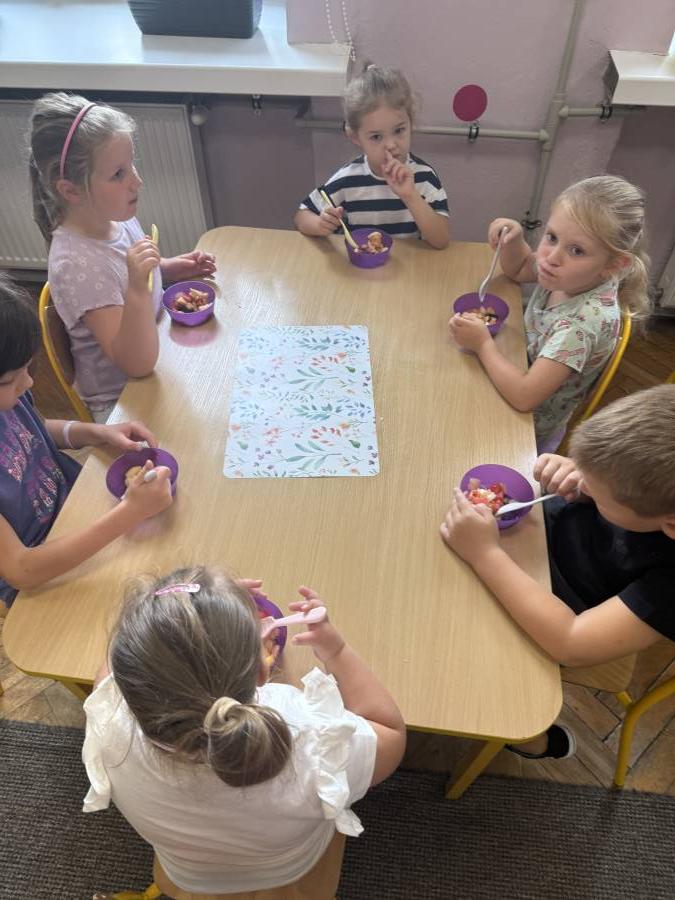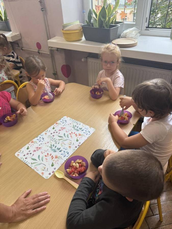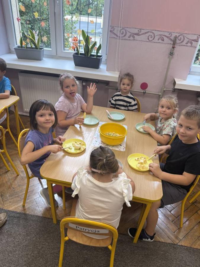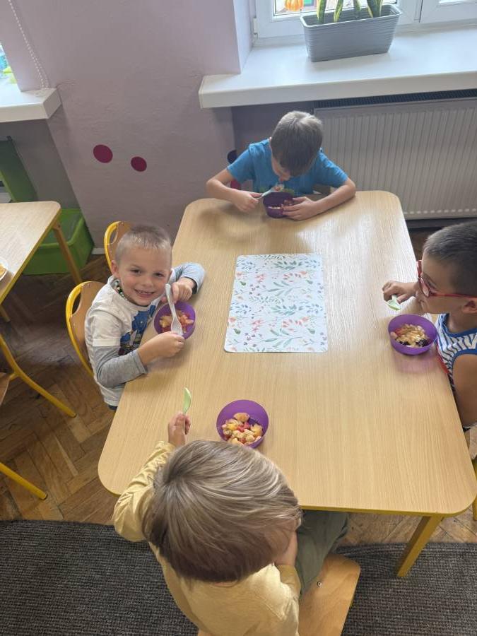 Dnia 19.09.2025 grupa V Krasnale miała okazję wykonać sałatkę owocową, którą następnie zjedliśmy ze smakiem.