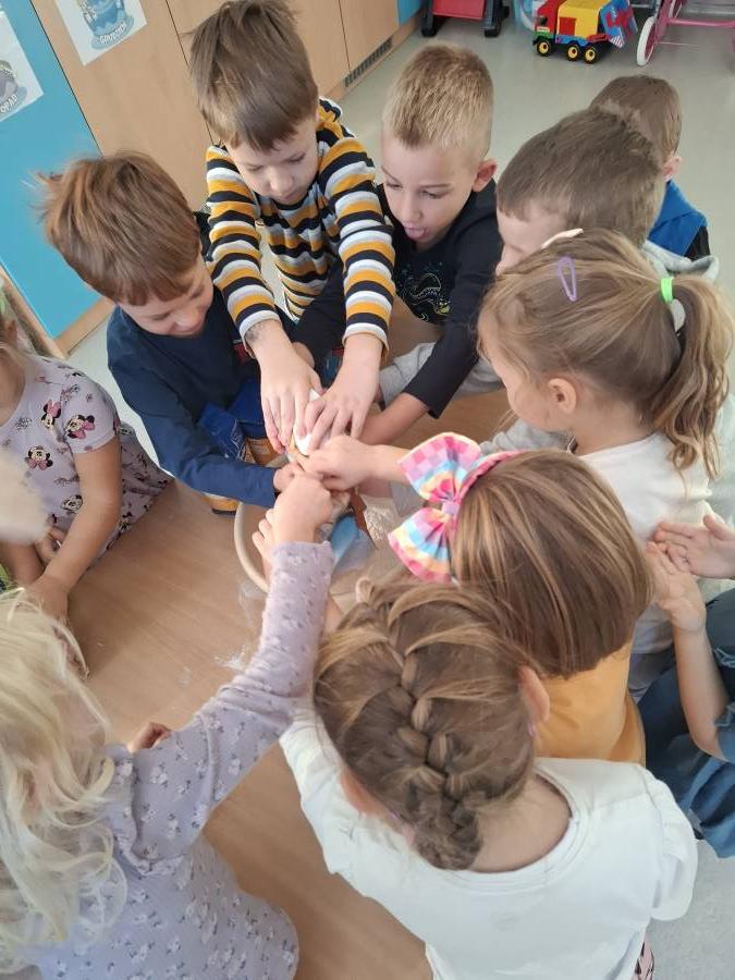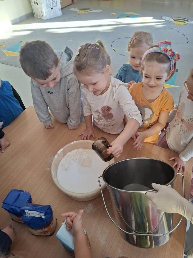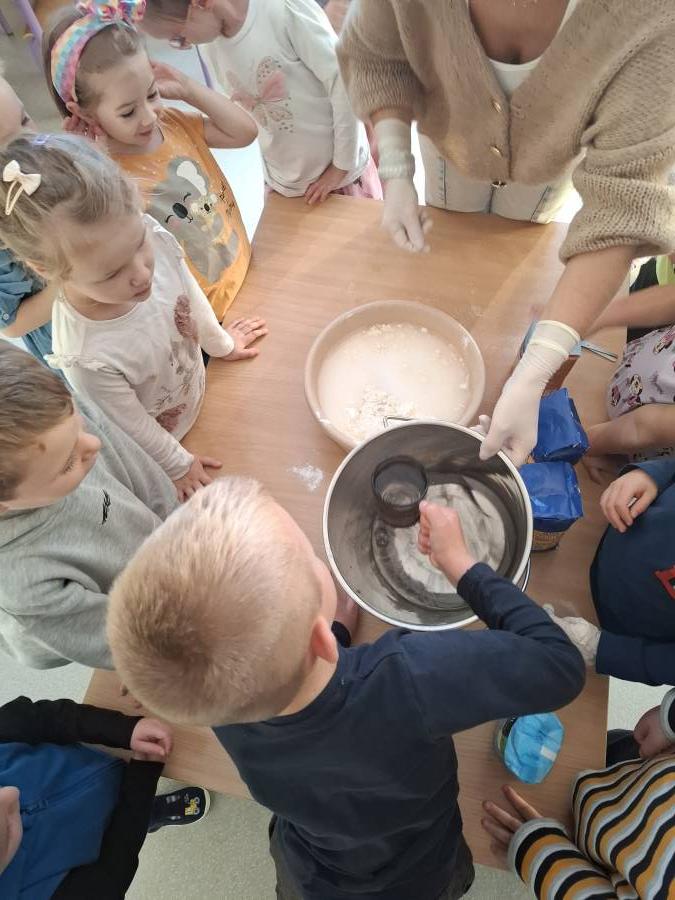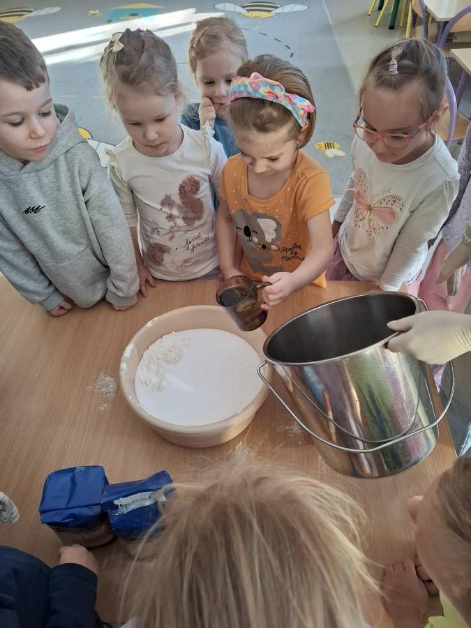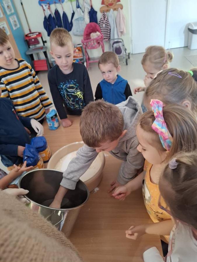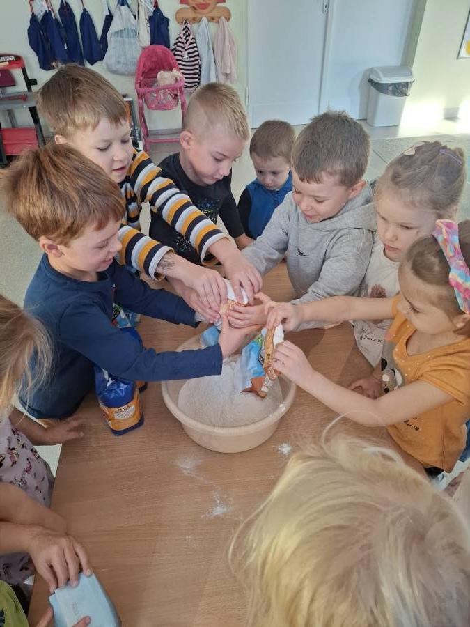 Na dzisiejszych zajęciach wspólnie wykonaliśmy masę solną. Starannie odmierzaliśmy wszystkie składniki i dokładnie mieszaliśmy masę. Kolce wykonaliśmy z paluszków, a ziele angielskie pomogło nam w wykonaniu oczek dla Jeżyków . Była to niezwykła zabawa.
