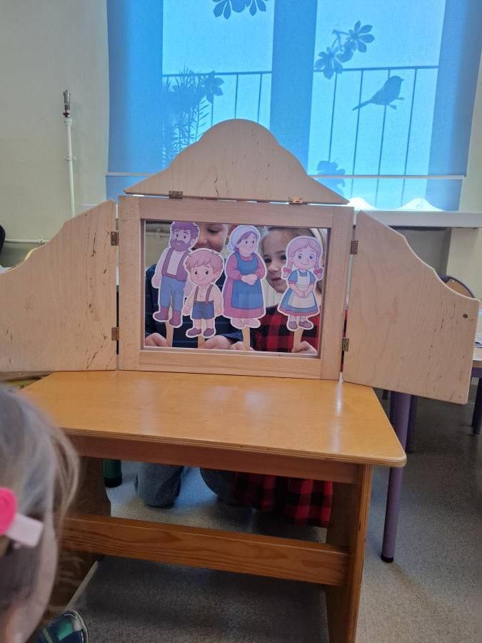 Przedszkolaki wcieliły się w bohaterów bajki ?Jaś i Małgosia?. Wspólne odgrywanie ról pozwoliło im rozwijać wyobraźnię, uczyć się współpracy oraz poznać tajniki pracy aktora. Z zaangażowaniem przygotowały krótkie przedstawienie, świetnie się przy tym bawiąc.