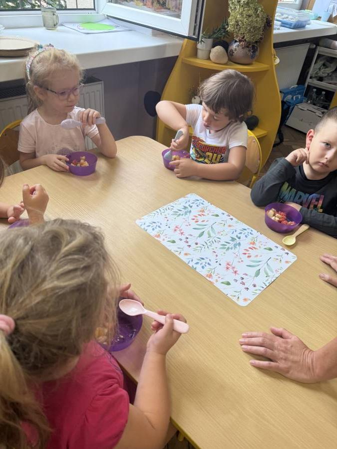 Dnia 19.09.2025 grupa V Krasnale miała okazję wykonać sałatkę owocową, którą następnie zjedliśmy ze smakiem.